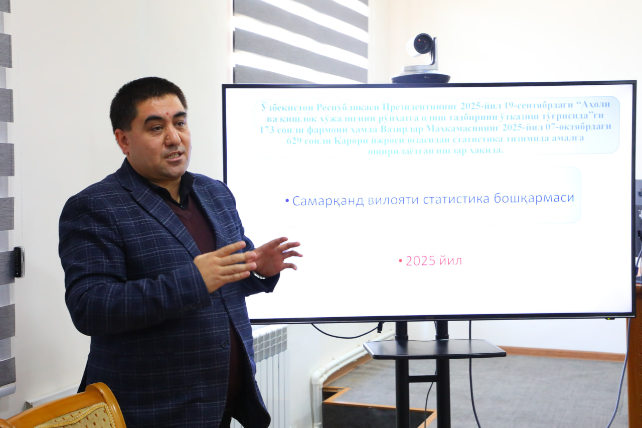 2025-yil 3-dekabr kuni Samarqand viloyati statistika boshqarmasida Toshkent davlat iqtisodiyot universiteti Samarqand filiali ustoz va talabalari uchun Aholi va qishloq xo‘jaligini ro‘yxatga olish jarayoniga bag‘ishlangan ochiq eshiklar kuni tashkil etildi.