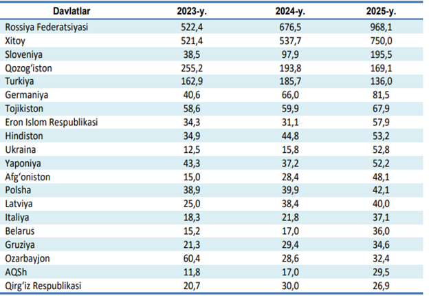 Samarqand viloyati jahonning 113 mamlakati bilan savdo aloqalarini amalga oshirib kelmoqda. TSAning nisbatan salmoqli hissasi Rossiyada (29,9 %), XXRda (23,2 %), Sloveniyada (6,0 %), Qozog‘istonda (5,2 %) va Turkiyada (4,2 %) qayd etilgan.
