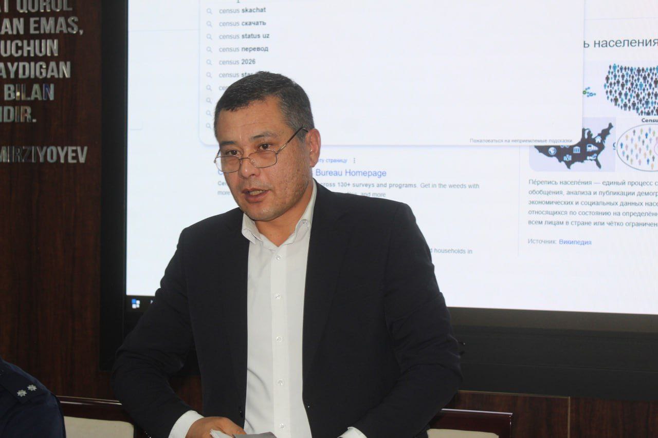 Seminar davomida mas’ul xodim tomonidan census.stat.uz portalida ro‘yxatdan o‘tish, o‘zi va oila a’zolari haqidagi ma’lumotlarni kiritish hamda yakunda sertifikatni shakllantirish tartibi bo‘yicha tushuntirishlar berildi.