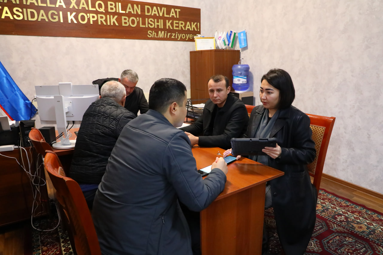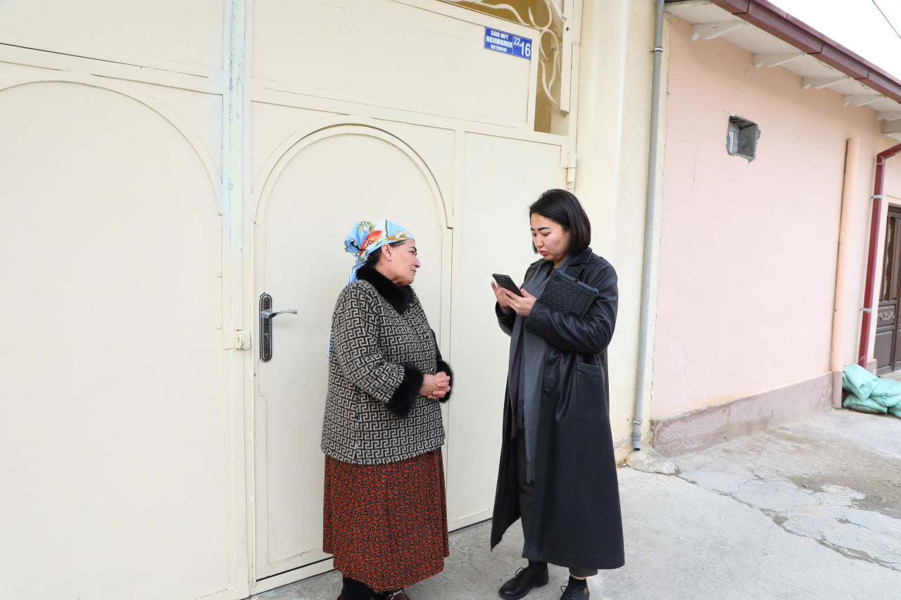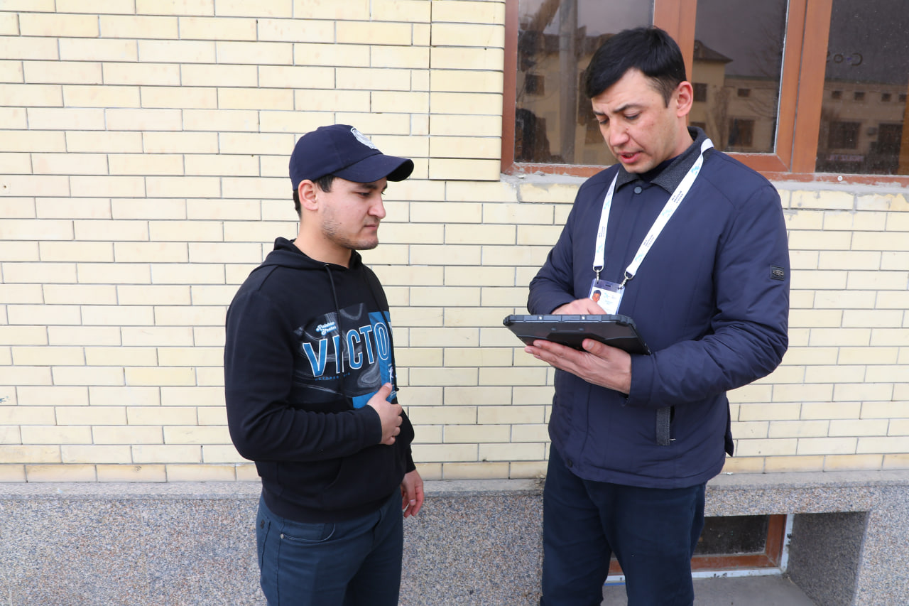 Joriy yilning 2026-yil 4-28-fevral kunlari ro‘yxatga oluvchilar hamda mahalla yettiligi vakillari xonadonma-xonadon yurib, onlayn ro‘yxatga olish bosqichida ishtirol etmagan yoki savolnomalarni xato va kamchiliklar bilan to‘ldirgan fuqarolar haqidagi ma’lumotlarni planshet qurilmalari orqali elektron tizimga kiritmoqdalar.