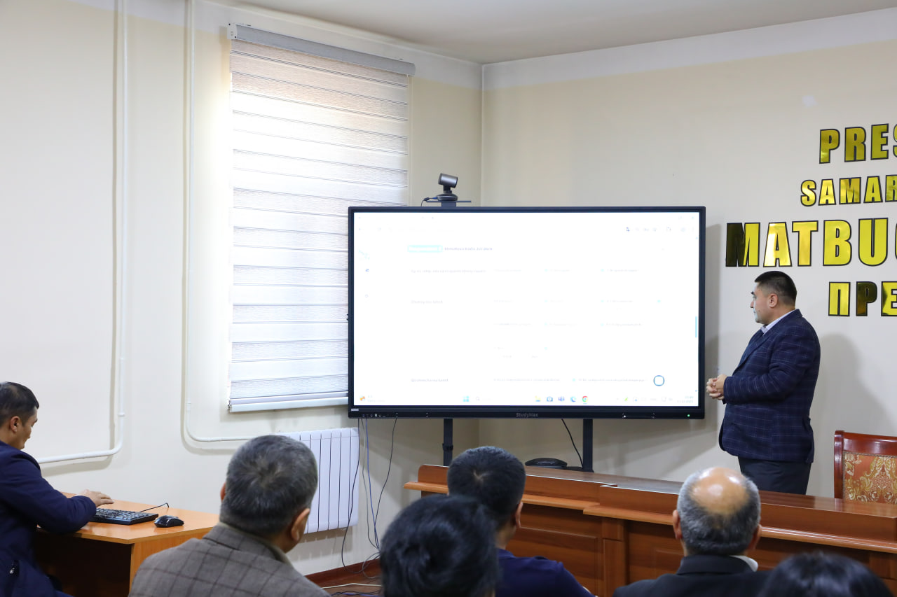 2025-yil 15-dekabr kuni viloyat statistika boshqarmasi xodimlari tomonidan Samarqand viloyatida faoliyat olib borayotgan “Zarafshon”, “Ovozi Samarqand”, “Самаркандский вестник” hamda “Samarqand” gazetalari xodimlari uchun aholi va qishloq xo‘jaligini ro‘yxatga olish jarayonida onlayn ro‘yxatdan o‘tish bo‘yicha amaliy seminar o‘tkazildi.