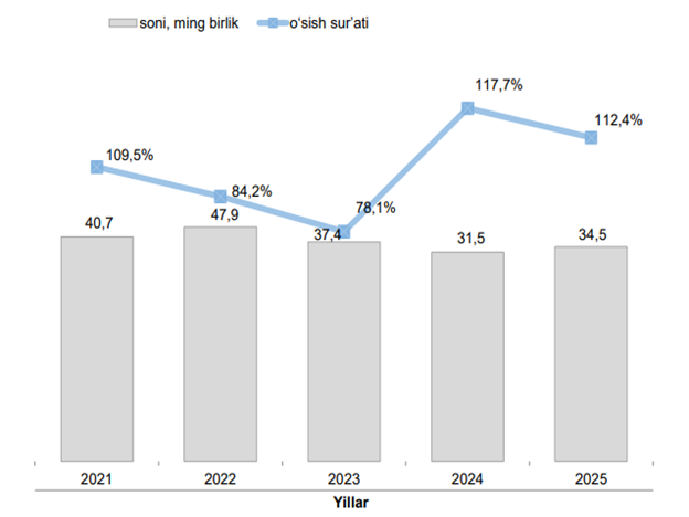 2026-yilning 1-yanvar holatiga faoliyat yuritayotgan kichik korxona va mikrofirmalar soni 34,5 mingtani tashkil etdi. Faoliyat yuritayotgan kichik korxona