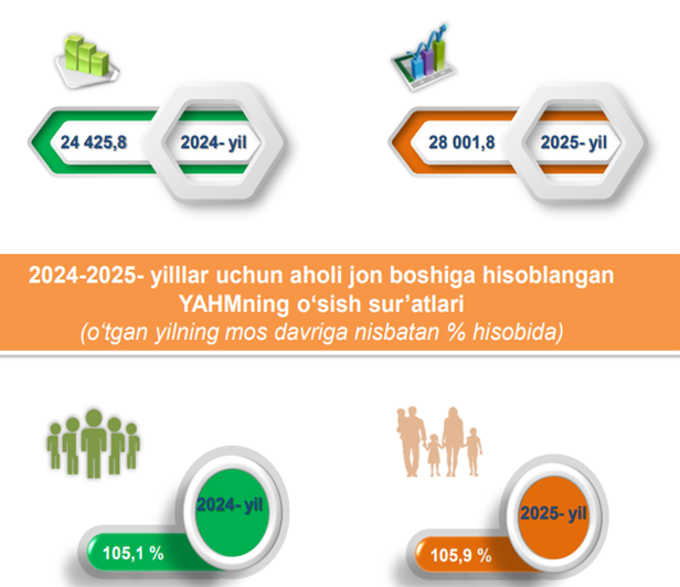 Quyida keltirilgan infografikadan ko‘rinib turganidek, aholi jon boshiga