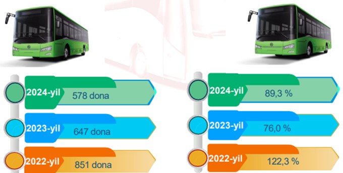 2024-yilning yanvar-dekabrida, avtomobil transportida yo‘lovchi tashish xizmatlarining umumiy hajmida kichik tadbirkorlikning ulushi 93,1 % ni tashkil etib