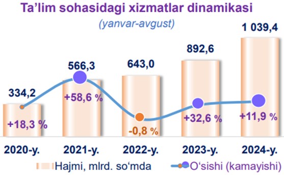 2024-yilning yanvar-noyabr oylarida ta’lim sohasidagi xizmatlar hajmi