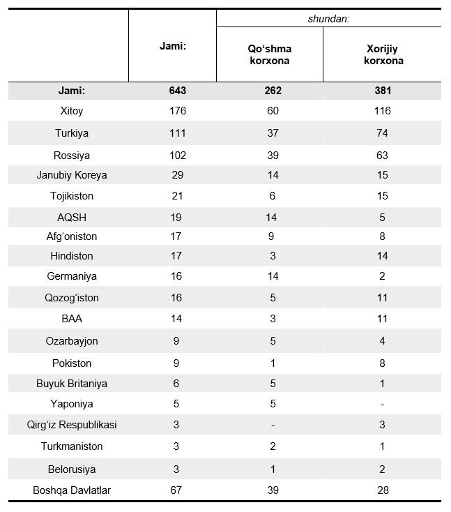 Viloyatimizda faoliyat ko‘rsatayotgan chet el investitsiyalari ishtirokidagi korxona va tashkilotlar tahlil qilinganda, yetakchi o‘rinni 176 ta korxona bilan Xitoy
