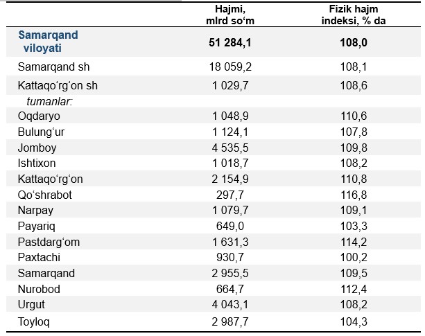 Dastlabki ma’lumotlar bo‘yicha 2025-yilning yanvar-noyabr oylarida viloyat korxonalari tomonidan 51 284,1 mlrd so‘mlik sanoat mahsulotlari ishlab chiqarilgan bo‘lib,