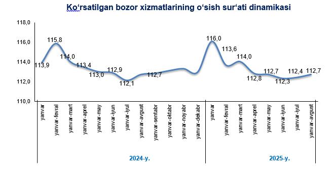 Milliy statistika qo‘mitasi ma’lumotlariga ko‘ra, 2025-yil yanvar-iyul oylarida O‘zbekistonda aholi jon boshiga ko‘rsatilgan bozor xizmatlarining hajmi 14,4 mln so‘mni tashkil etdi.