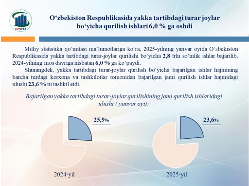 Milliy statistika qo‘mitasi ma’lumotlariga ko‘ra, O‘zbekistonda 2025-yil yanvar-iyul oylarida 11,3 mln tonna sement ishlab chiqarilgan.