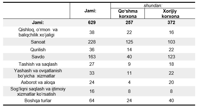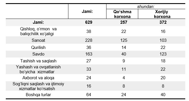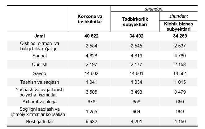 Iqtisodiy faoliyat turlari boʻyicha faoliyat yuritayotgan korxona va tashkilotlarning (tadbirkorlik subyektlari va kichik biznes subyektlarining) eng