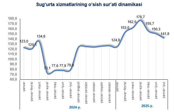 2025-yilning yanvar-iyul oylarida moliyaviy xizmatlar tarkibidagi sug‘urta xizmatlarida o‘sish kuzatildi. 2024-yilning mos davriga nisbatan hajmi 30,3 mlrd