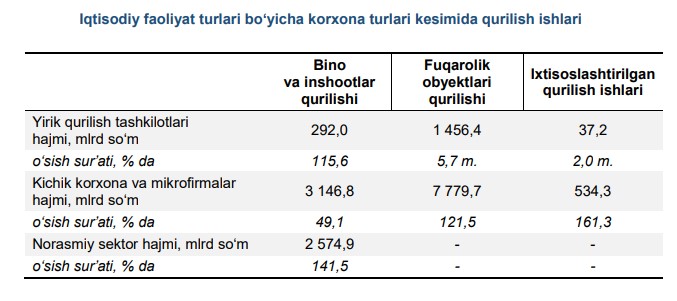2025-yilning yanvar-oktabr oylarida Samarqand viloyatida bajarilgan qurilish ishlarining iqtisodiy faoliyat turlari bo‘yicha taqsimlanishi quyidagicha: