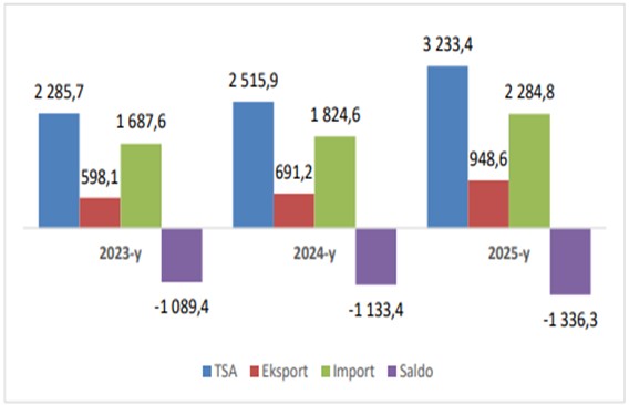 2025-yil yanvar-oktabr oylarida viloyatning tashqi savdo aylanmasi (matnda TSA) 3 233,4 mln AQSH dollariga yetdi va 2024-yilning yanvar-oktabr