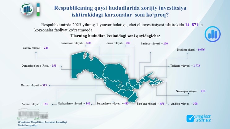 2025-yil 1-iyul holatiga koʻra, Samarqand viloyatida faoliyat koʻrsatayotgan korxona va tashkilotlar soni (dehqon va fermer xoʻjaliklari bundan mustasno)