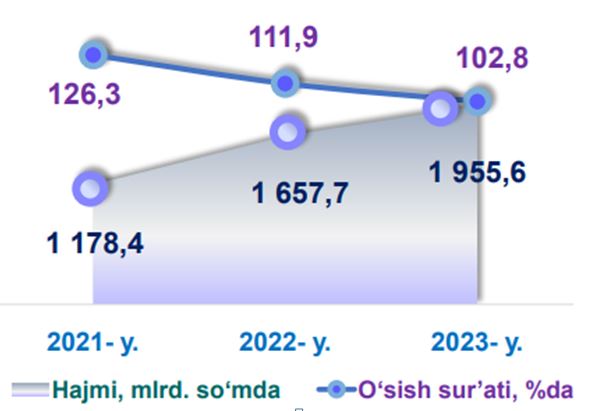2021-yilning yanvar-aprel oylariga nisbatan 2023-yilning yanvar-aprel oylari davomida savdo xizmatlari hajmi viloyat bo‘yicha 780,2 mlrd. so‘mga oshib,