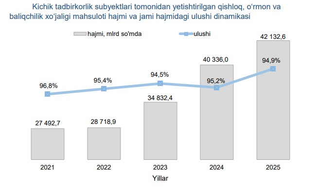 Samarqand viloyatida 2025-yilning yanvar-sentabr oylarida kichik tadbirkorlikning qishloq, o‘rmon va baliqchilik xo‘jaligidagi hajmi 42 132,6 mlrd