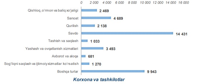 Iqtisodiy faoliyat turlari boʻyicha faoliyat yuritayotgan korxona va tashkilotlarning (tadbirkorlik subyektlari va kichik biznes subyektlarining) eng koʻp